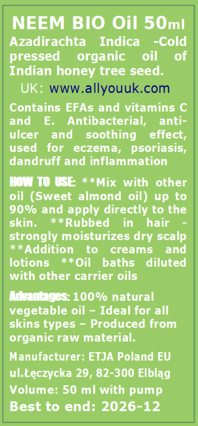 Neem Oil Pure Organic 100% BIO Neem Olej 50 ml